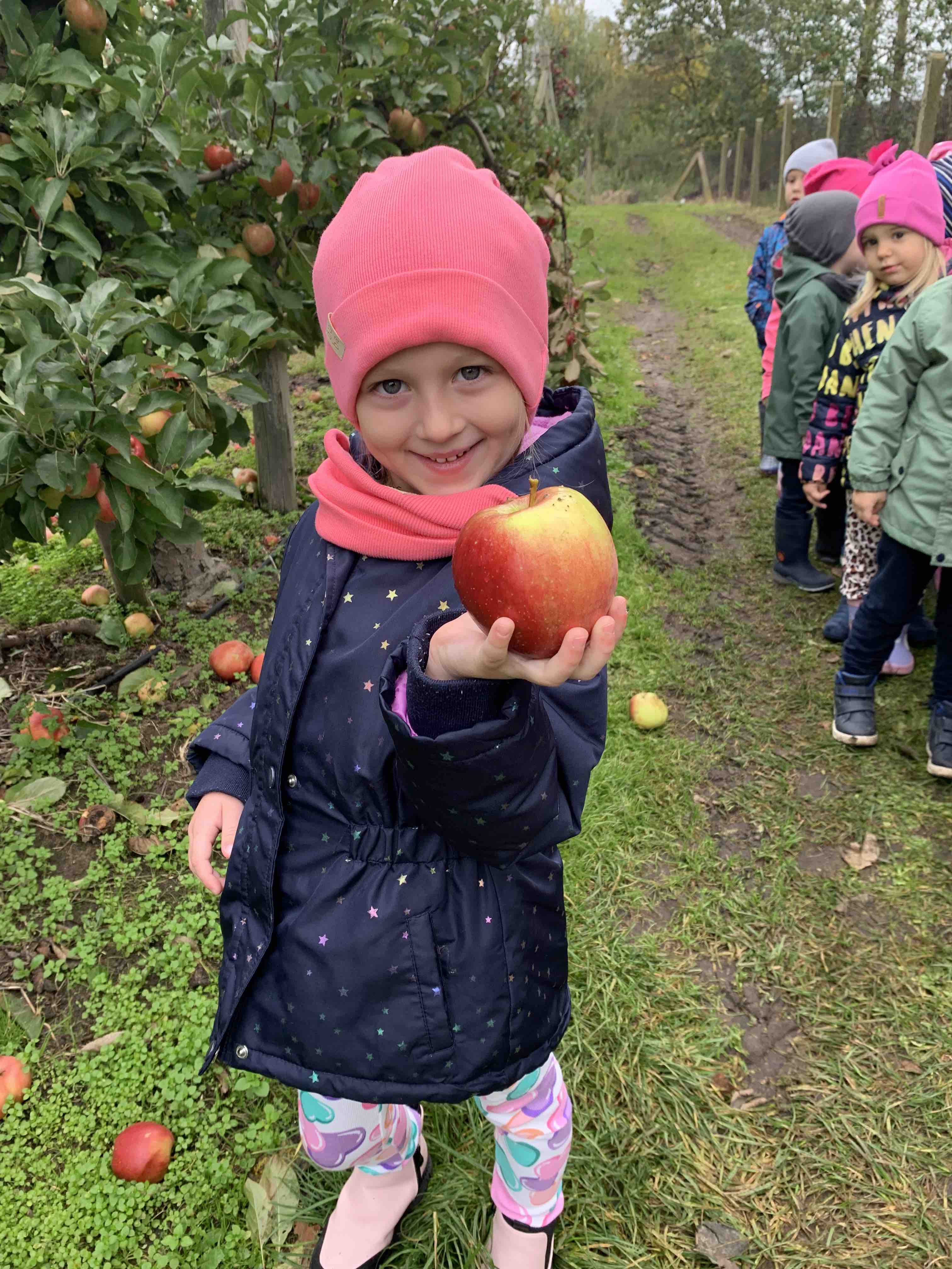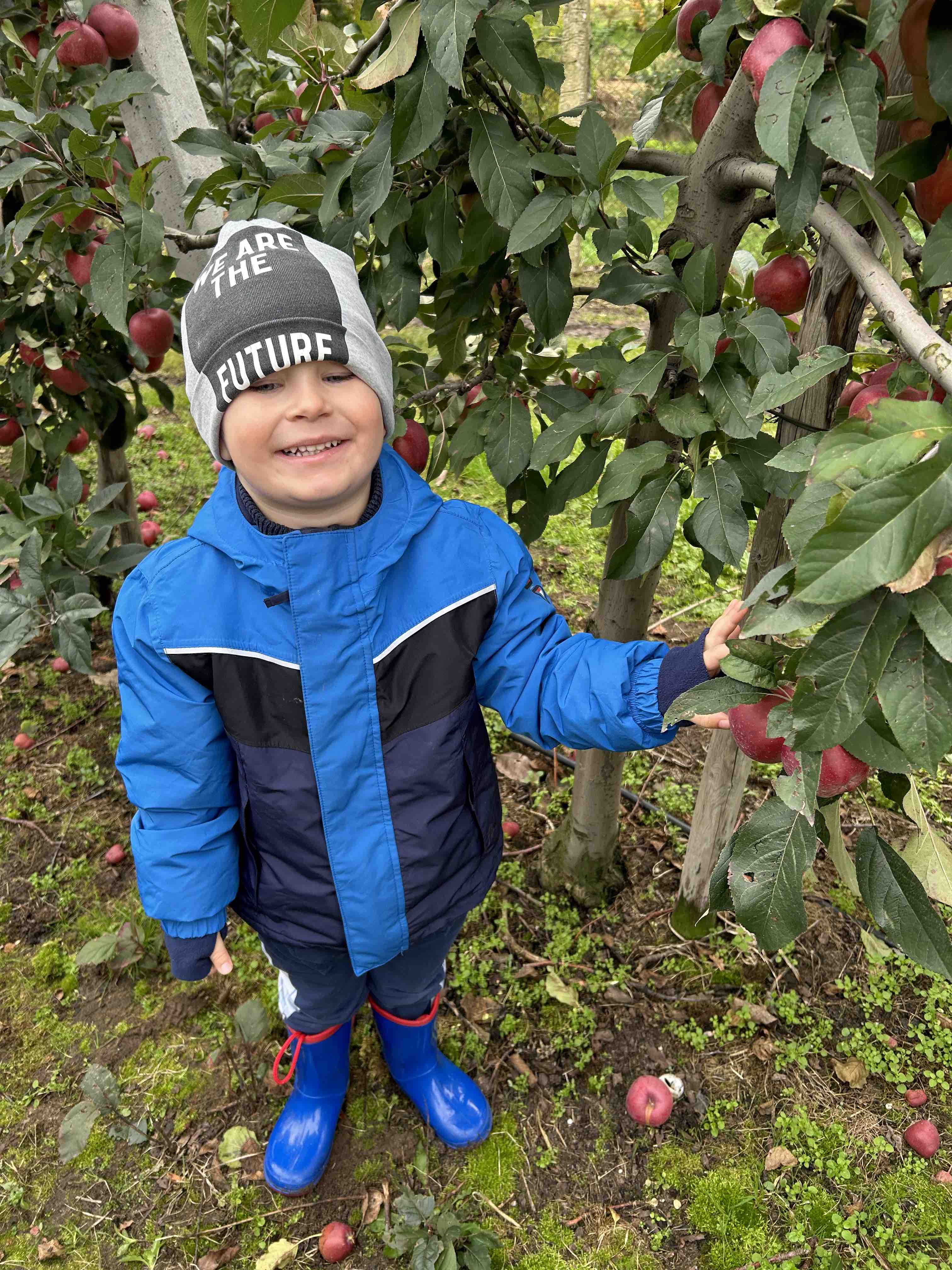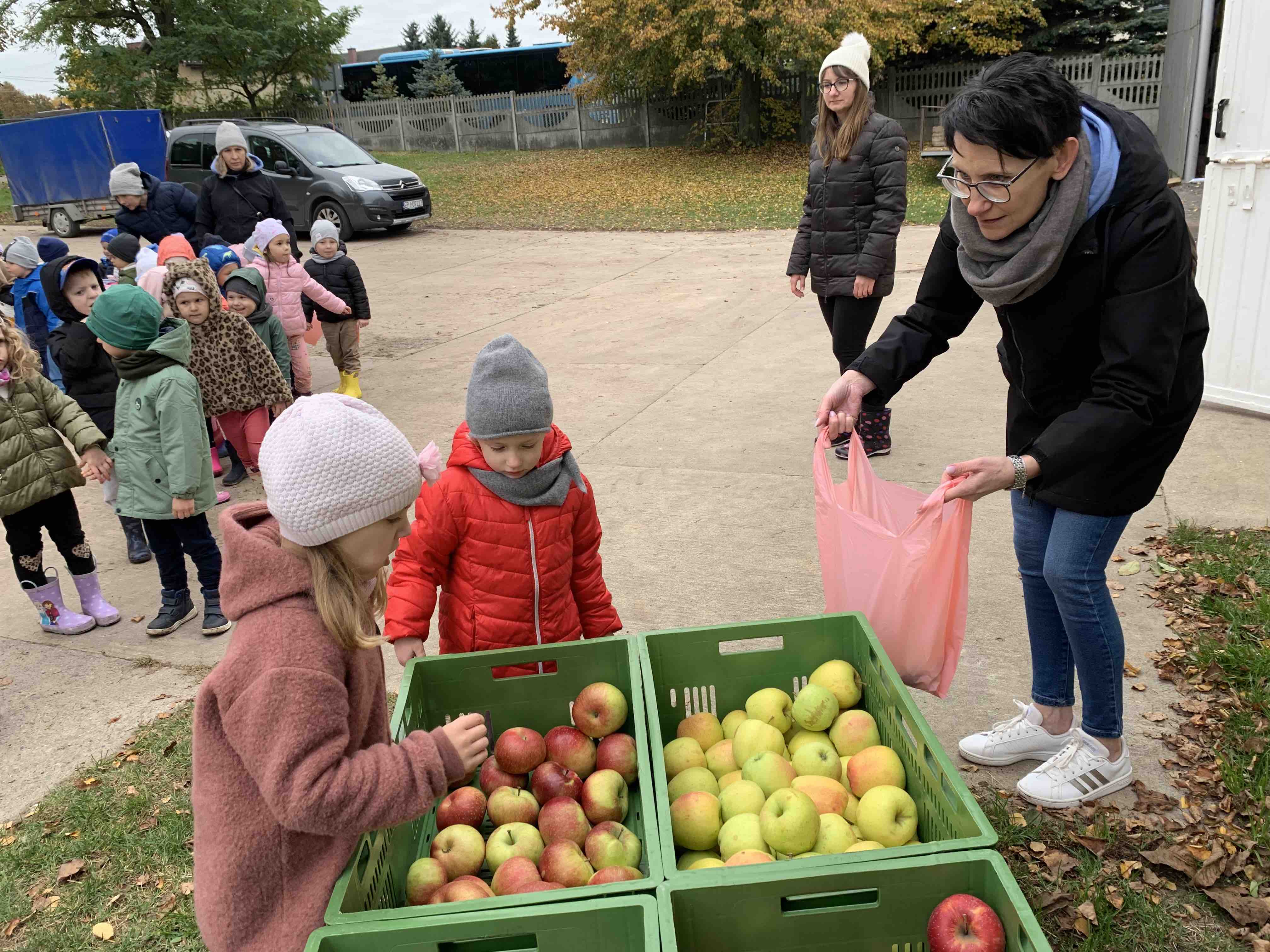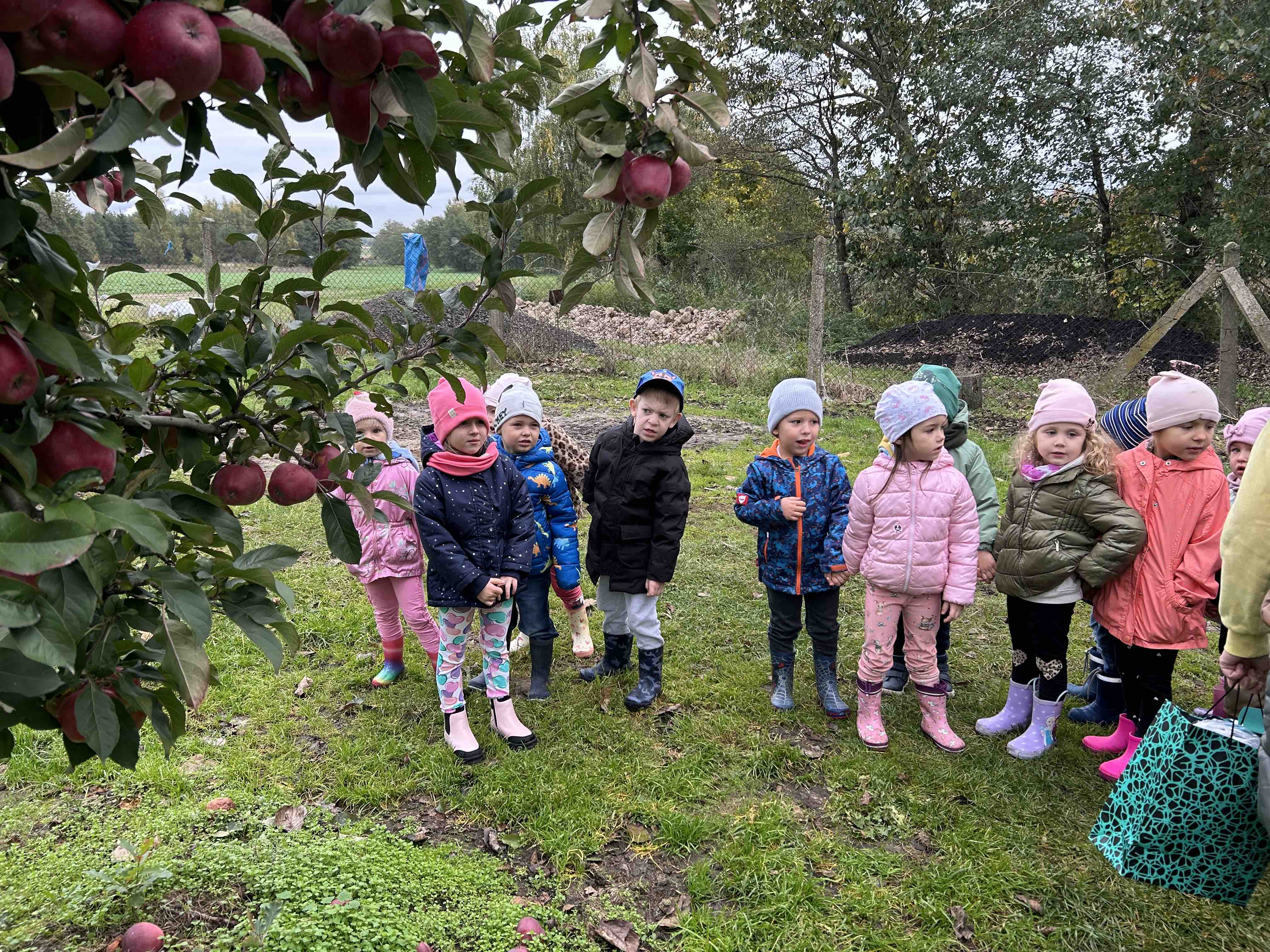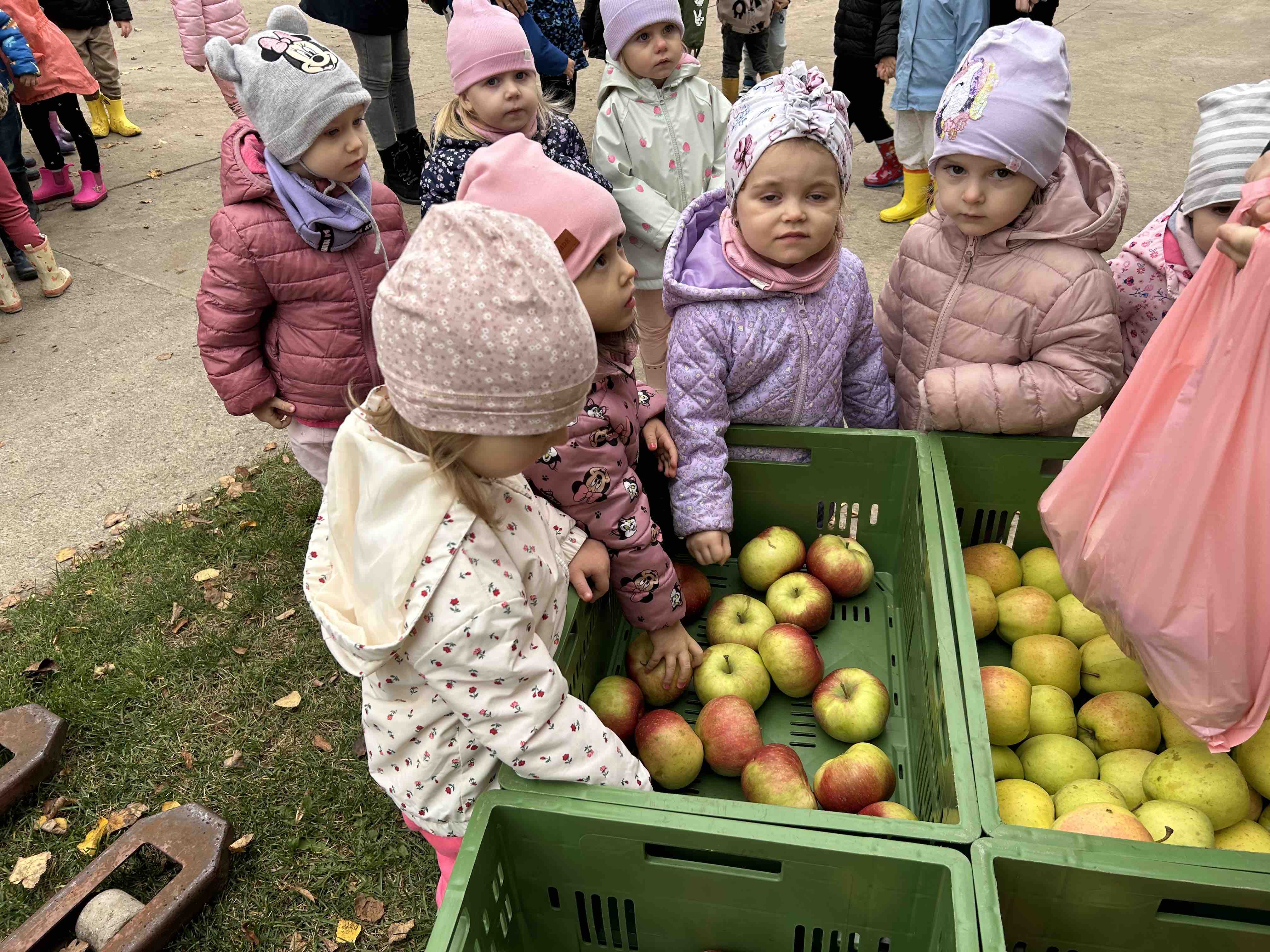 Jesień to czas zbiorów plonów w tym jabłek. Dnia 16.10.2025r. grupy dzieci 3 i 4-latków odwiedziły sadownika z Sulmierzyc p. W. Musiała.