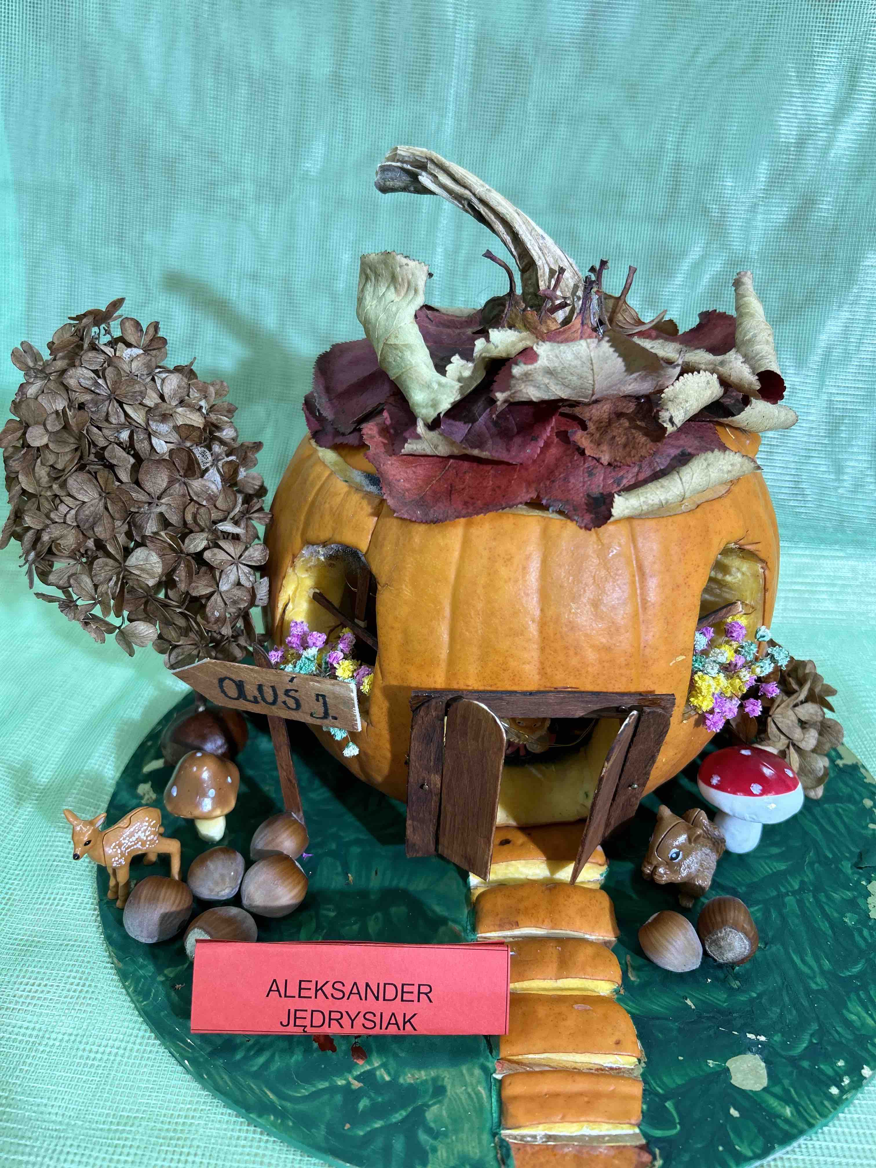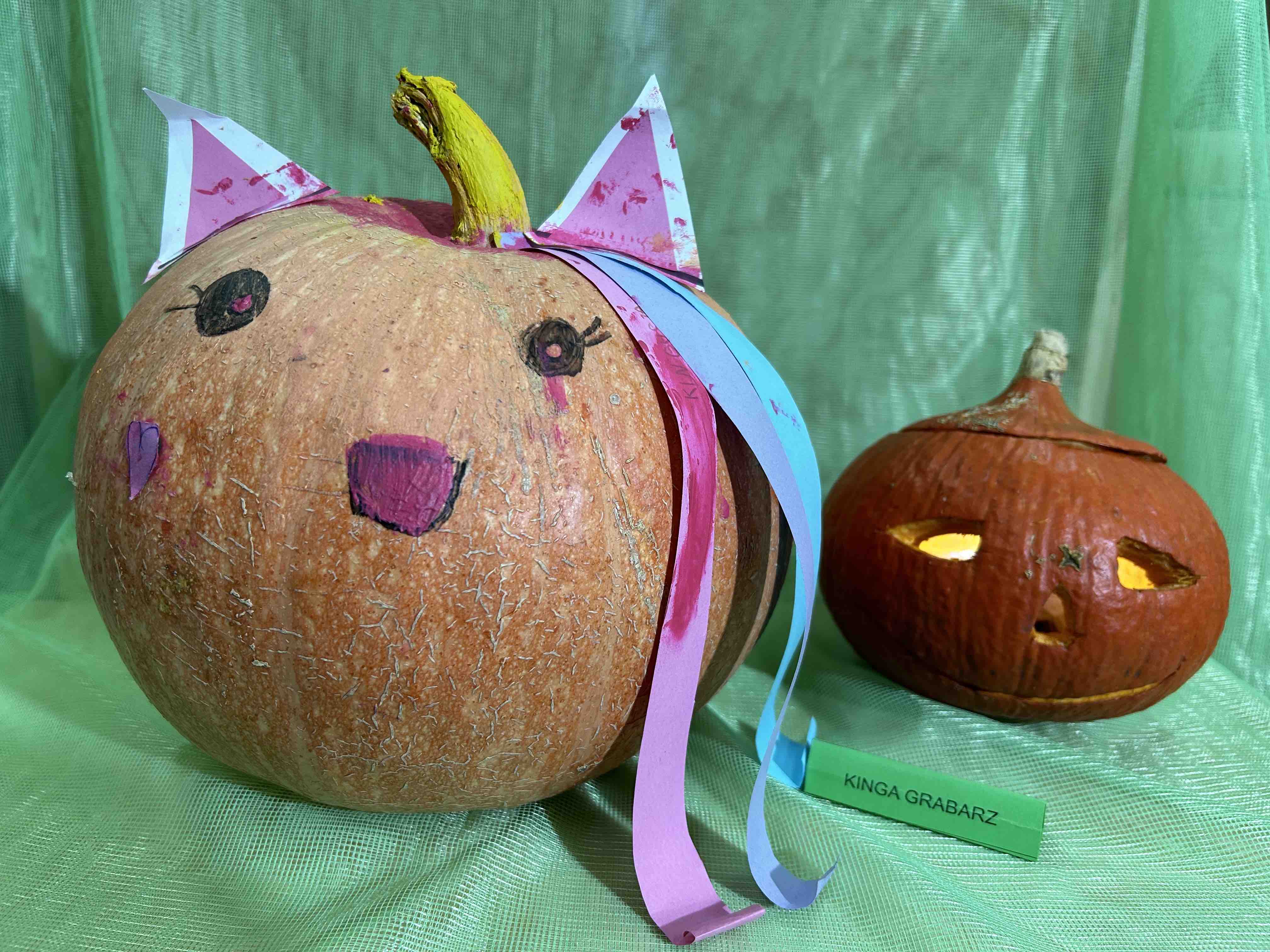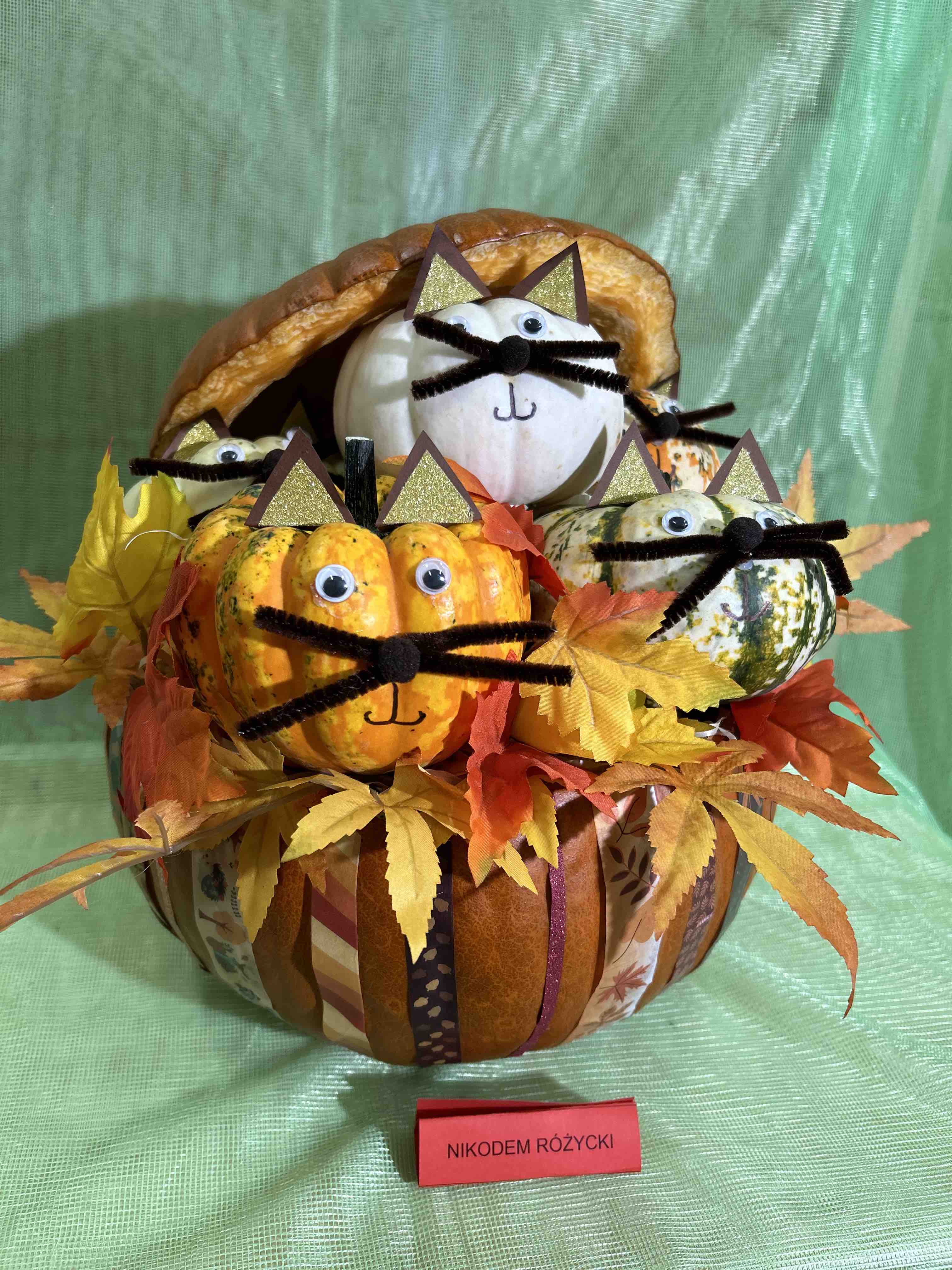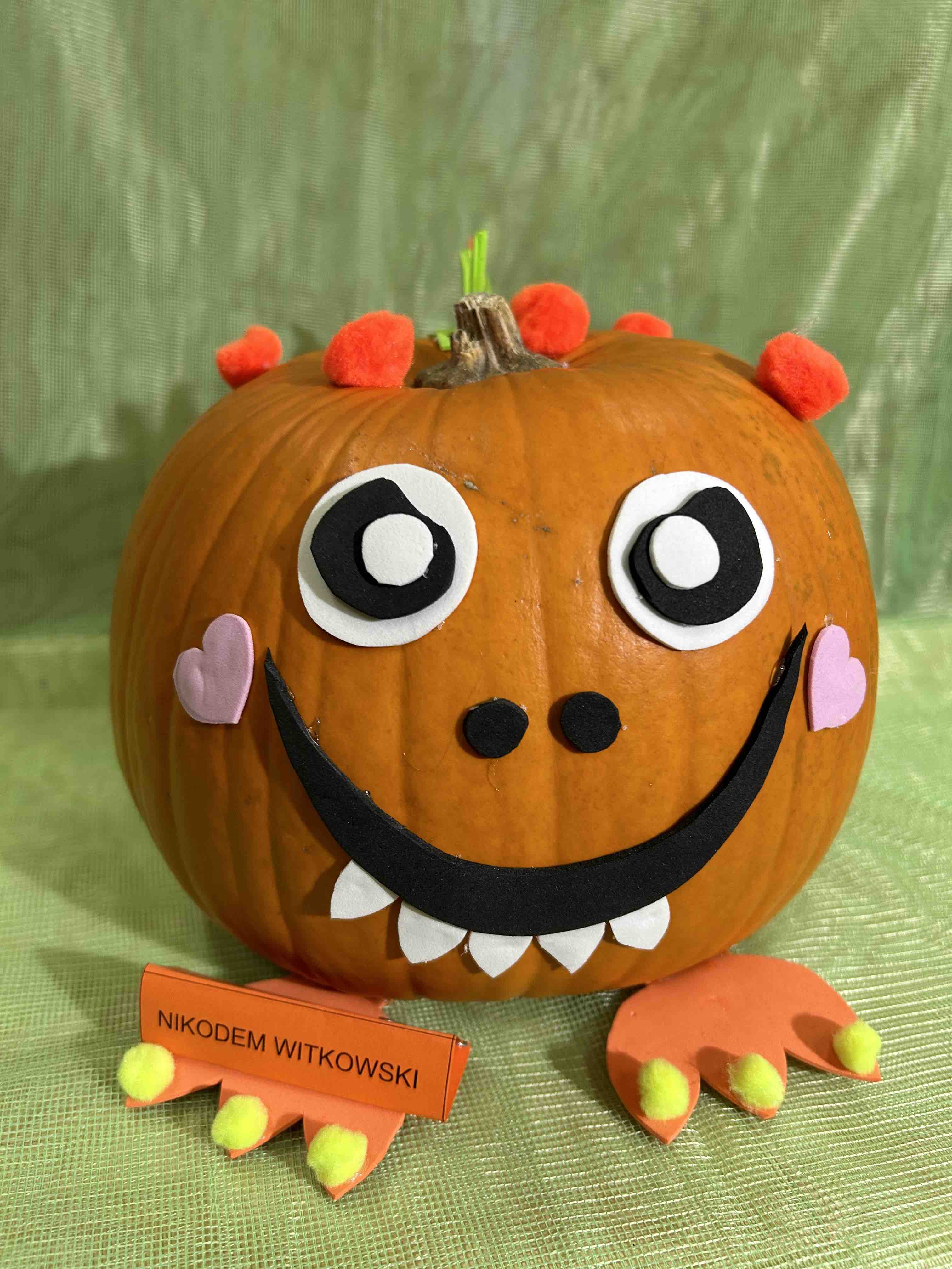 W ostatnim tygodniu października na przedszkolnym korytarzu pojawiły się niezwykłe dynie - to bohaterowie wystawy konkursowej ,,Dyniowe stwory poprawiają humory”. Każda dynia, mała czy duża, zmieniła się w wyjątkowego stwora o niepowtarzalnym wyglądzie. Wśród nich można było zobaczyć uśmiechnięte potworki, zabawne zwierzaki tj. dinozaury czy lwy. Niektóre stwory miały kapelusze, czapki, okulary lub szyszki, liście.