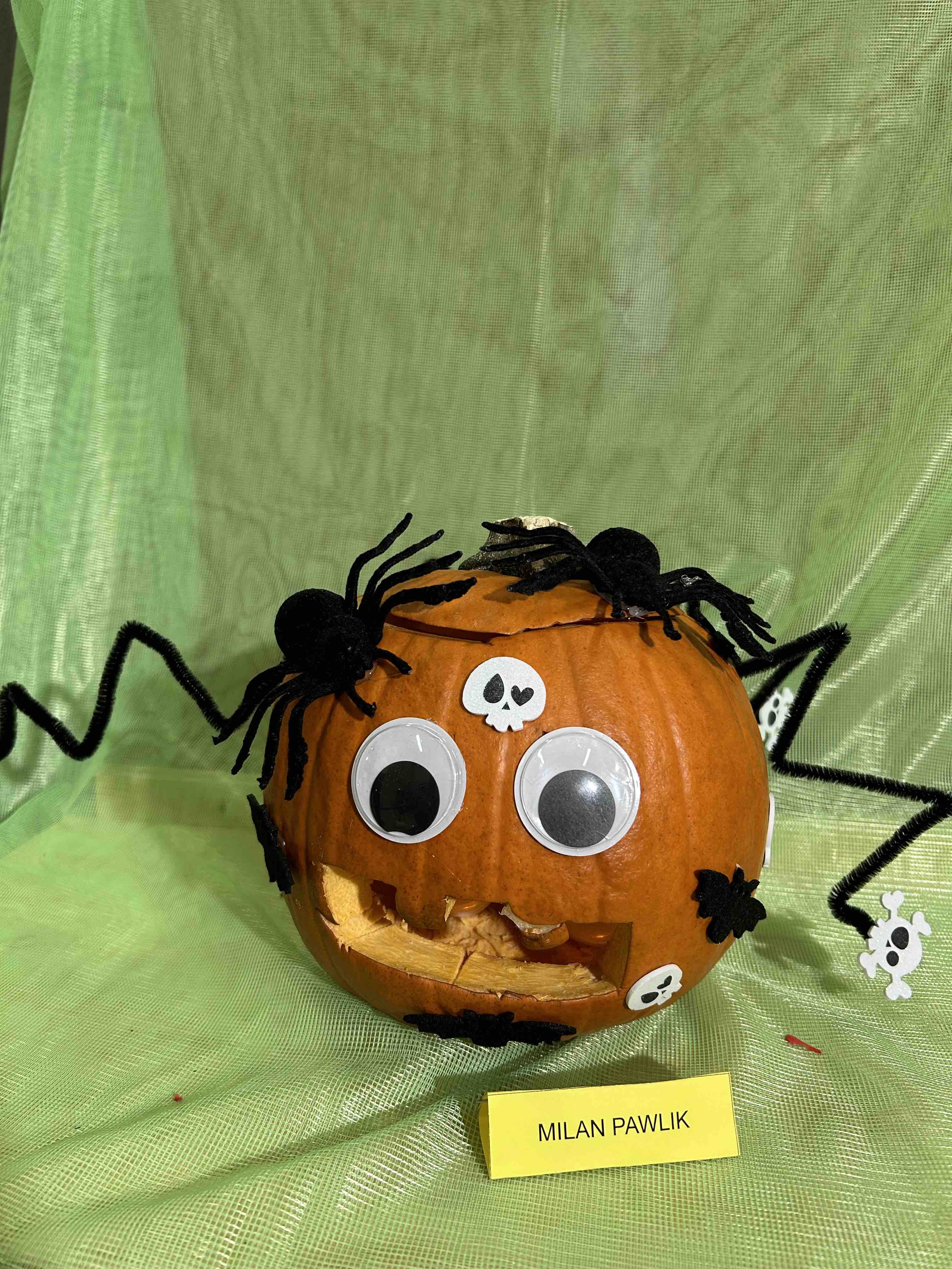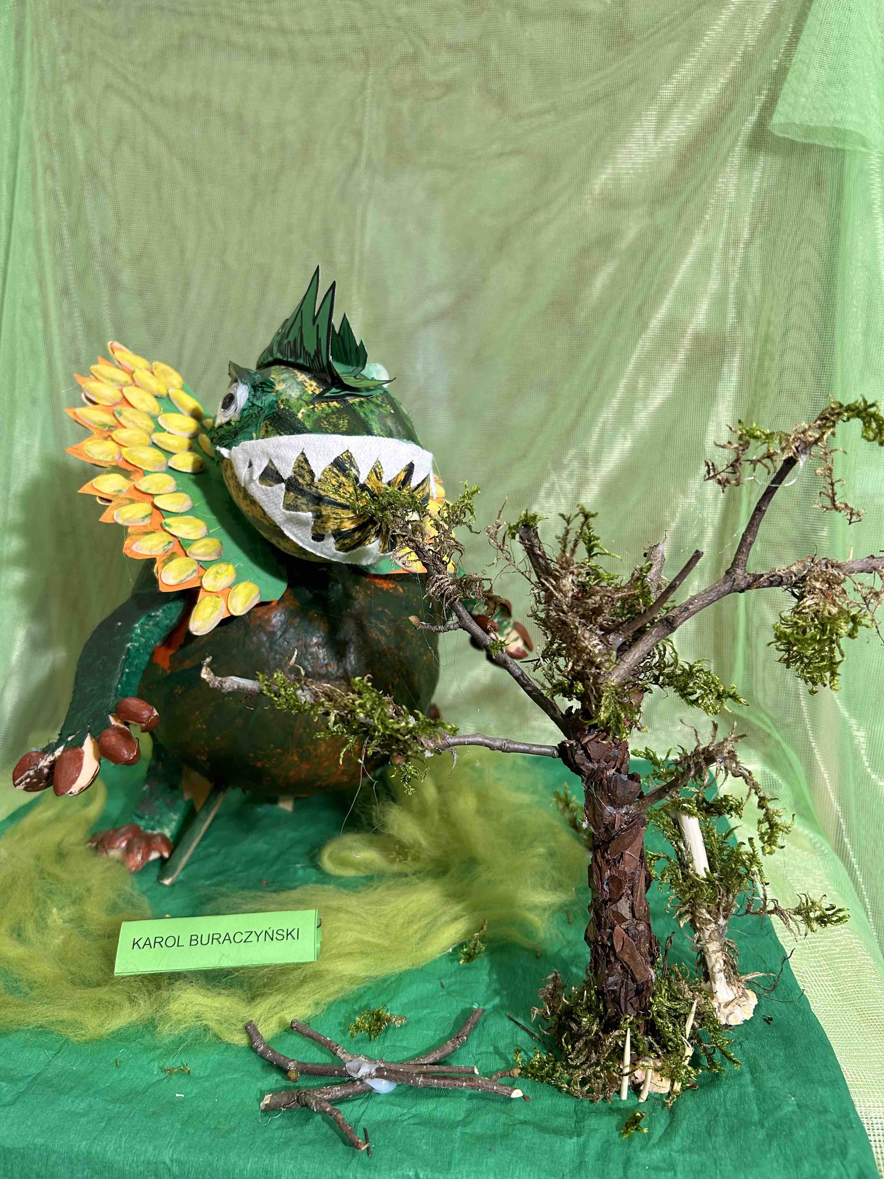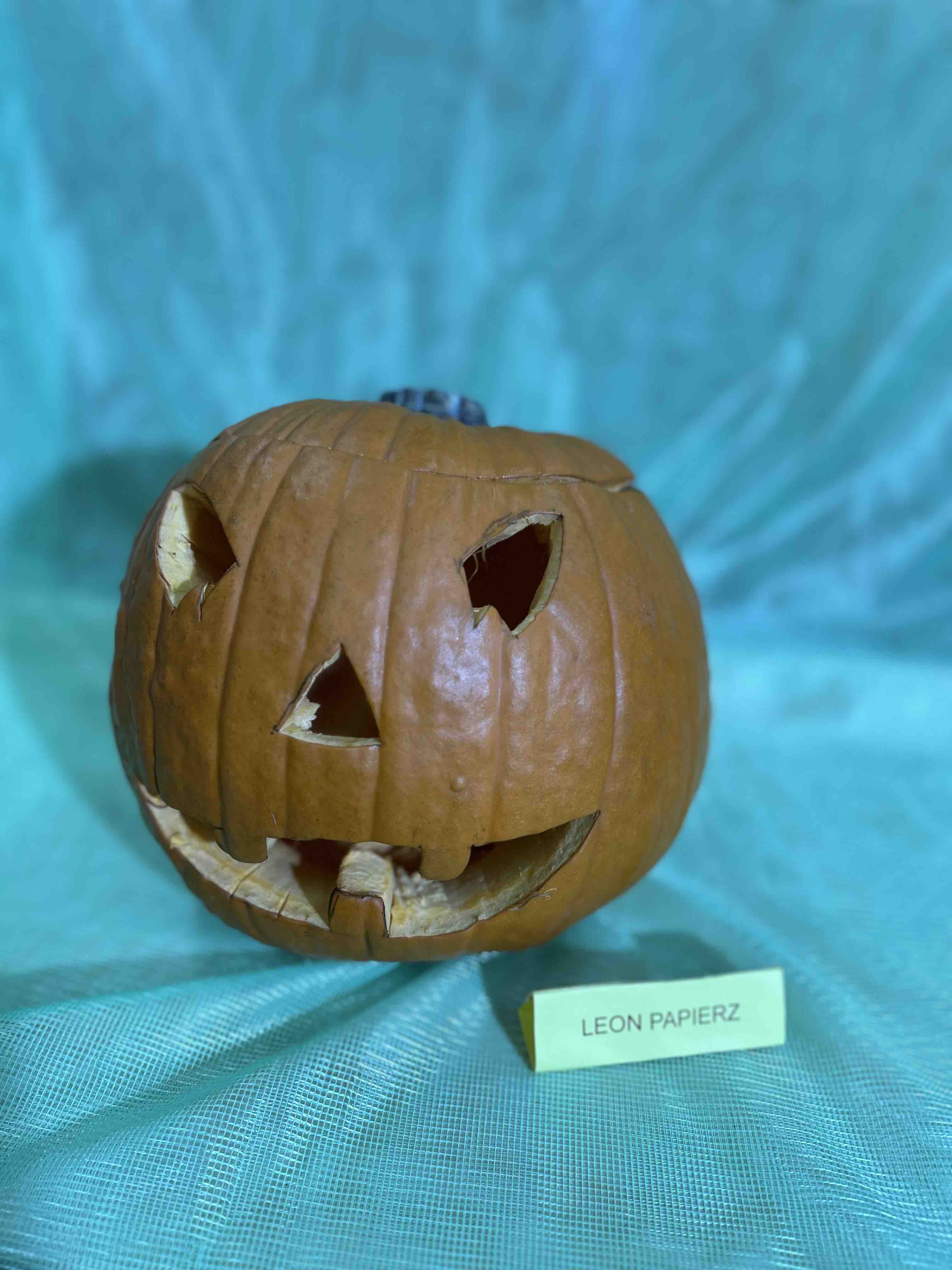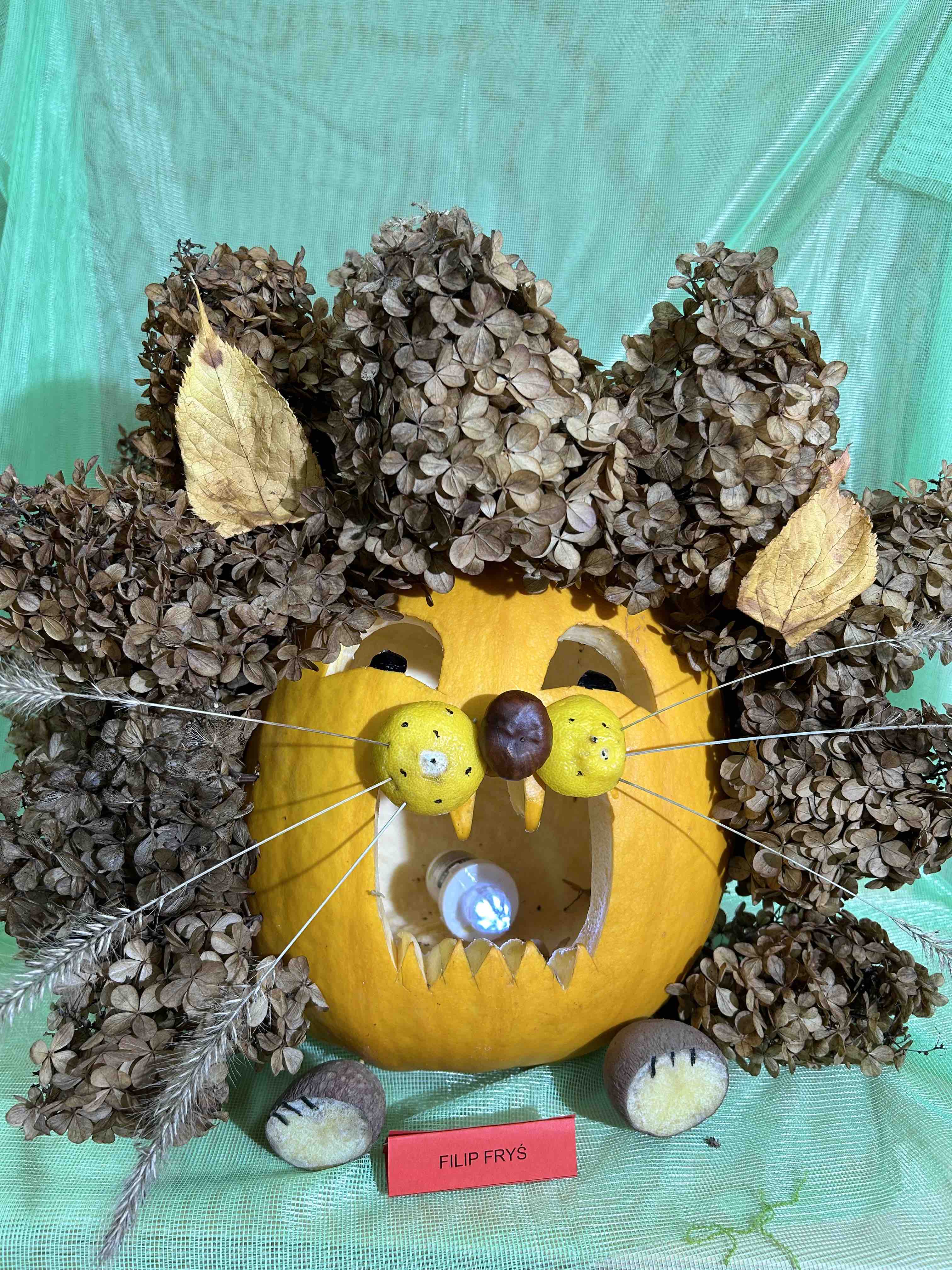 W ostatnim tygodniu października na przedszkolnym korytarzu pojawiły się niezwykłe dynie - to bohaterowie wystawy konkursowej ,,Dyniowe stwory poprawiają humory”. Każda dynia, mała czy duża, zmieniła się w wyjątkowego stwora o niepowtarzalnym wyglądzie. Wśród nich można było zobaczyć uśmiechnięte potworki, zabawne zwierzaki tj. dinozaury czy lwy. Niektóre stwory miały kapelusze, czapki, okulary lub szyszki, liście.