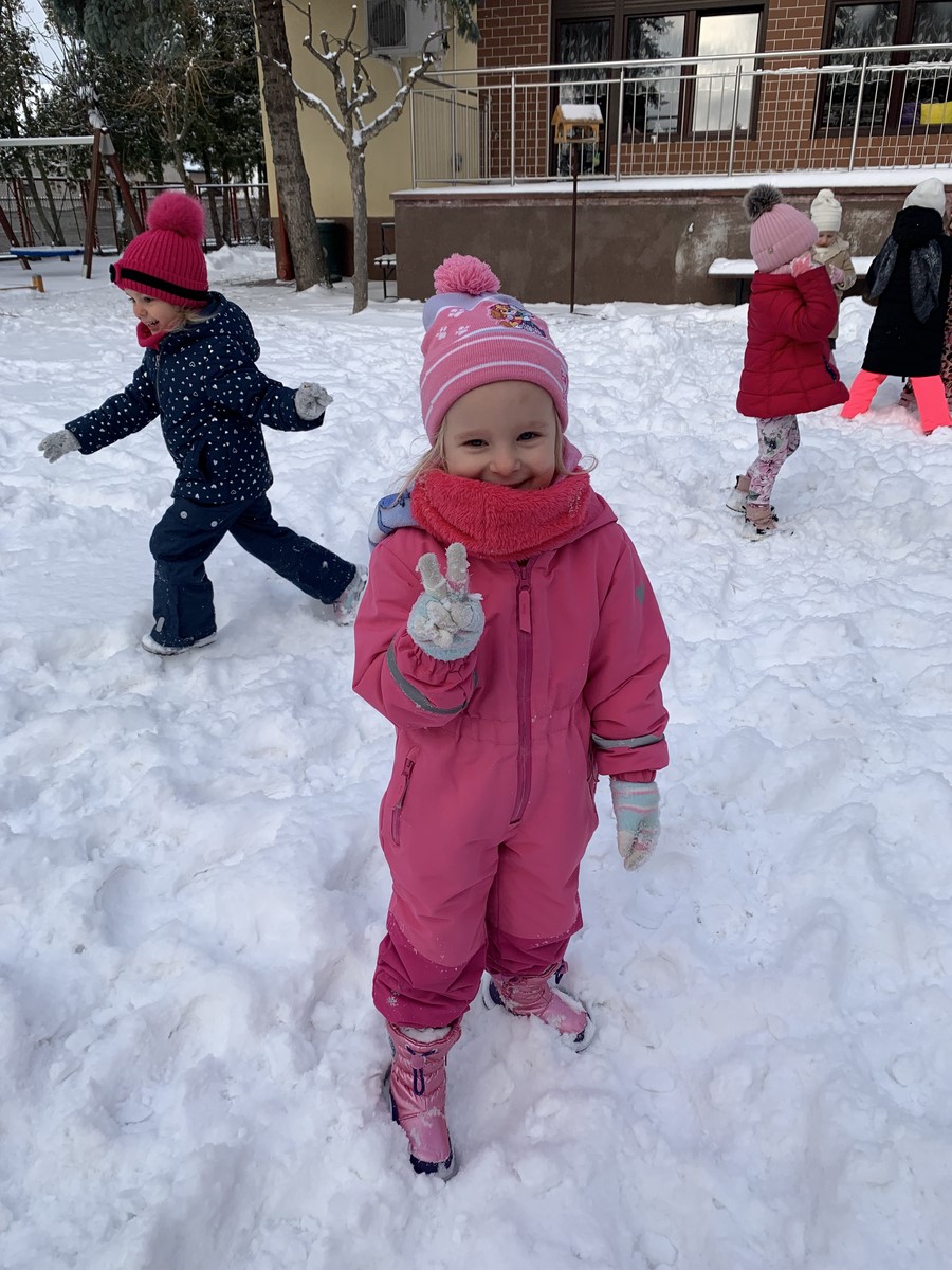 Korzystając z uroków zimy nasze Kropelki wesoło spędziły czas na wspólnych zabawach lepiąc śniegowe kule oraz rzucając śnieżkami do celu. Nie zabrakło również spacerów po zaśnieżonym terenie oraz rozmów o bezpieczeństwie czy też zmianach zachodzących w przyrodzie. Dzieci uwielbiają zabawy na świeżym powietrzu, była to dla nich świetna rozrywka.