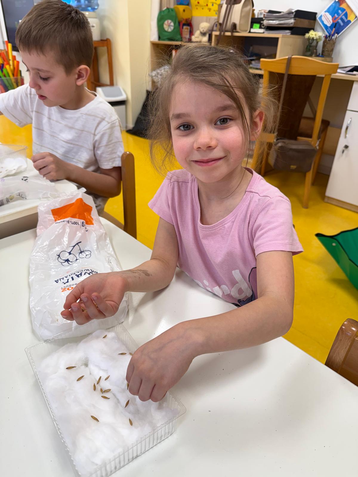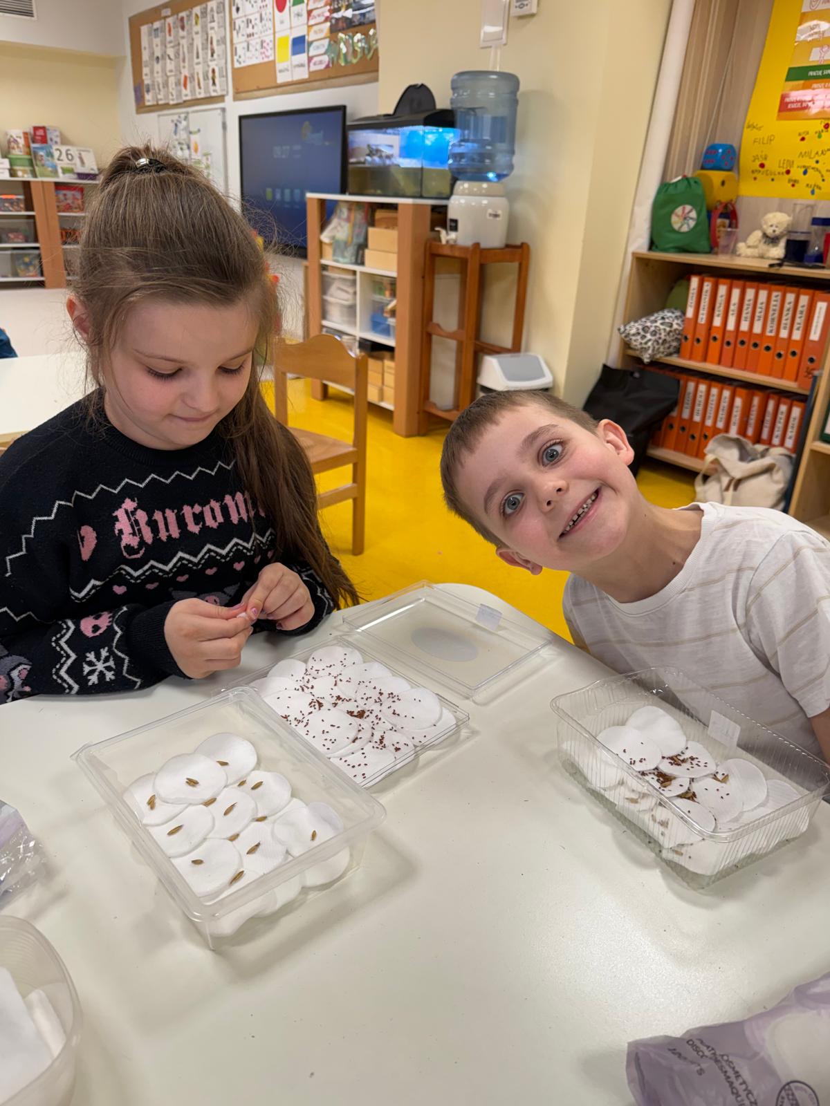 To była bardzo ważna i cenna lekcja przyrody. Dzieci z ochotą doglądają własnych hodowli oraz codziennie o nie dbają.