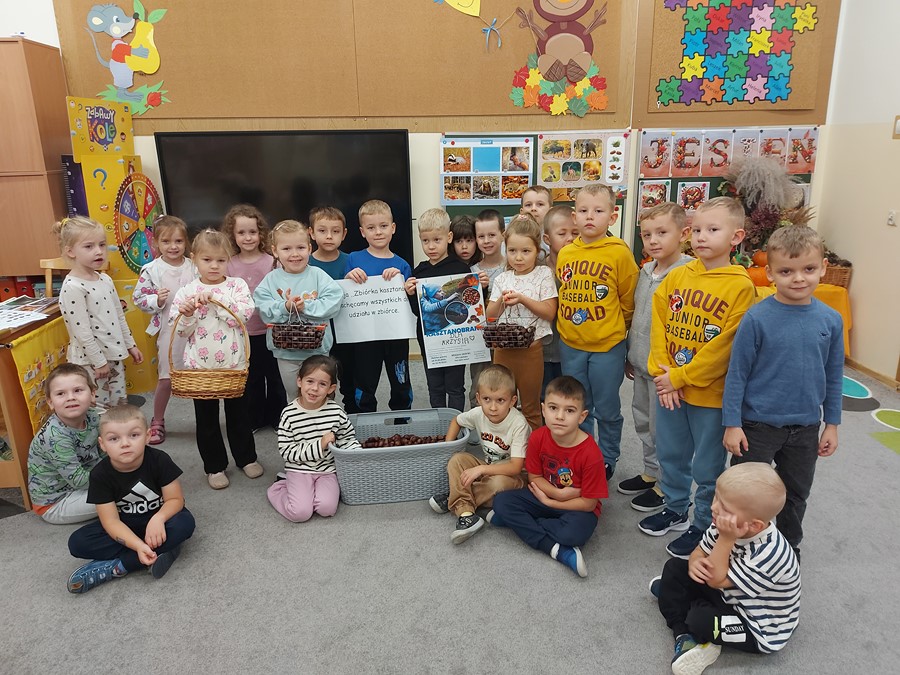 Każdy przyniesiony kasztan był symbolem dobroci, empatii i chęci niesienia pomocy innym. Dzieci z wielkim entuzjazmem brały udział w akcji, ucząc się, że nawet drobne gesty mogą mieć wielkie znaczenie.